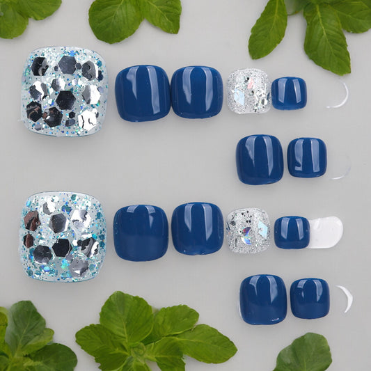 Blue & Silver Toe Nails
