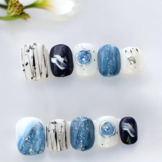 Blue & White Toe Nails