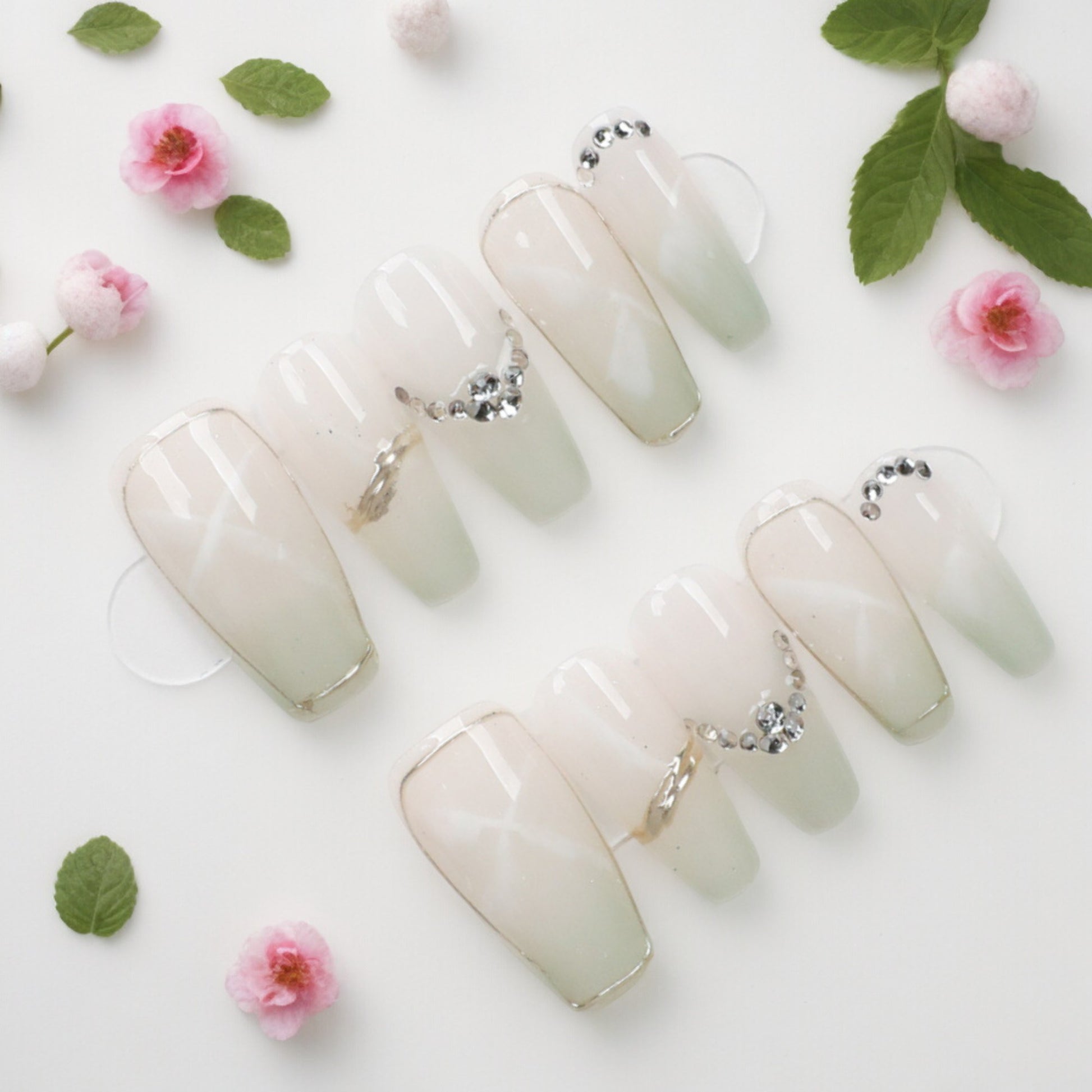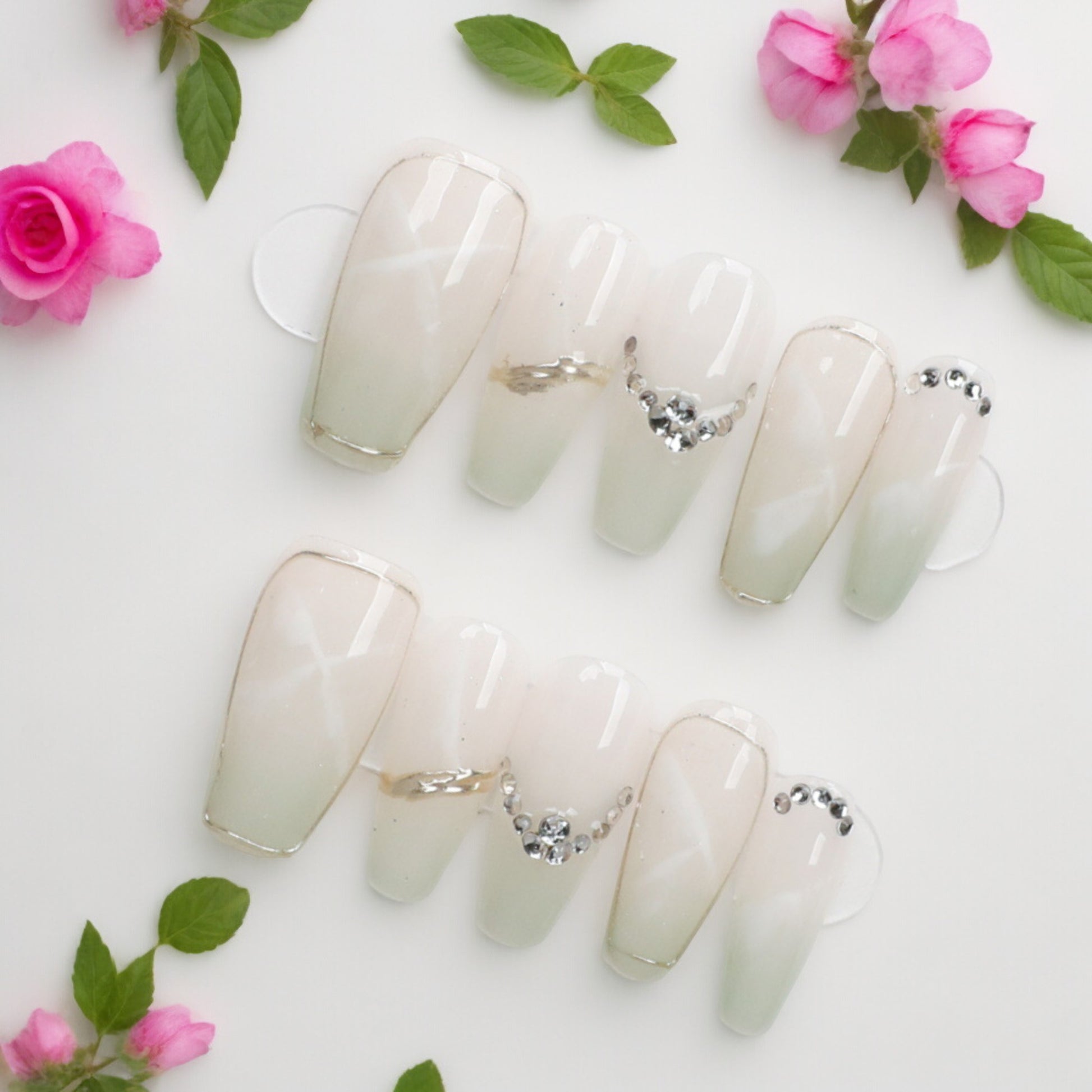 All our Press on nails set is come with One set of application kit. Each set features 10 hand-painted press on nails.