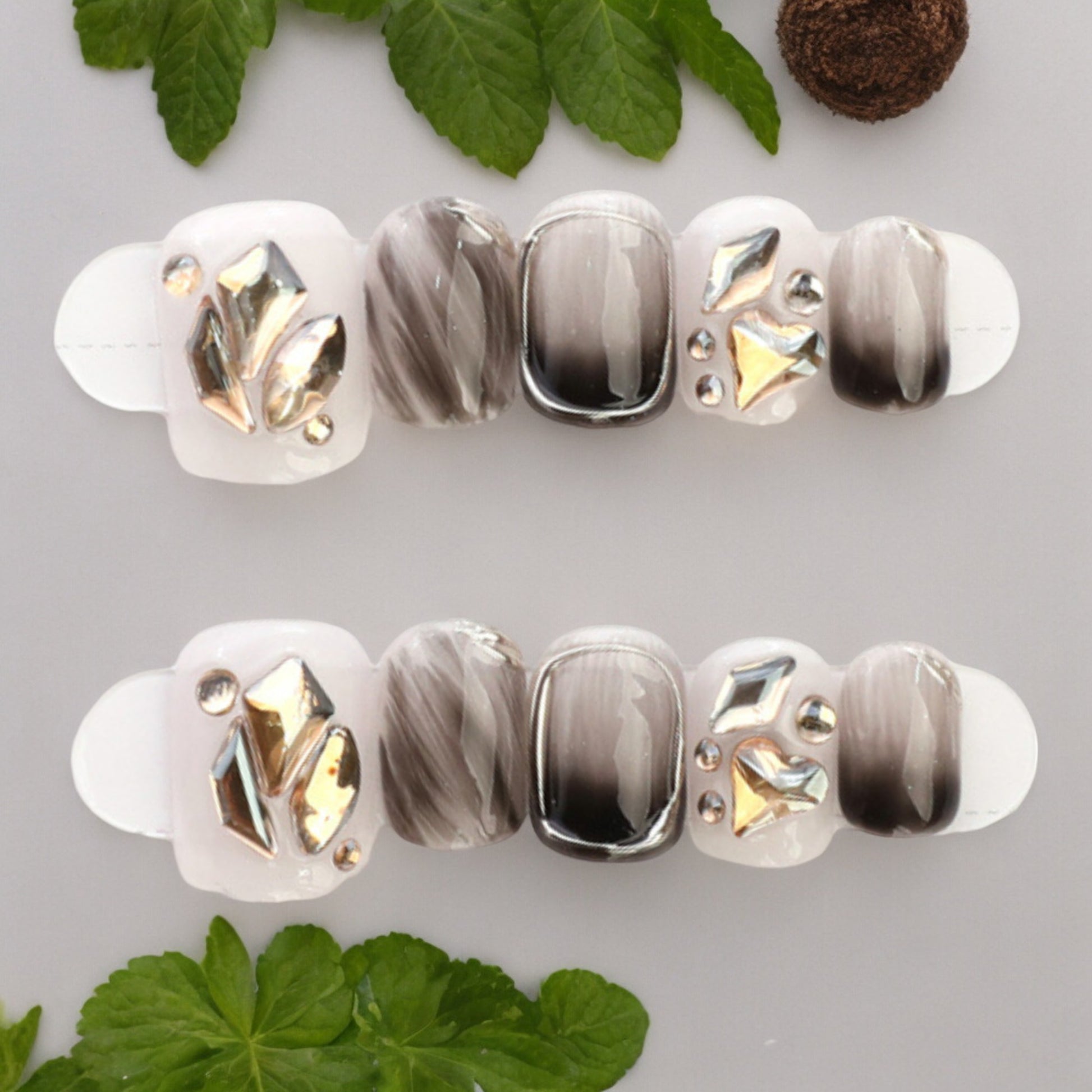 All our Press on nails set is come with One set of application kit. Each set features 10 hand-painted press on nails.