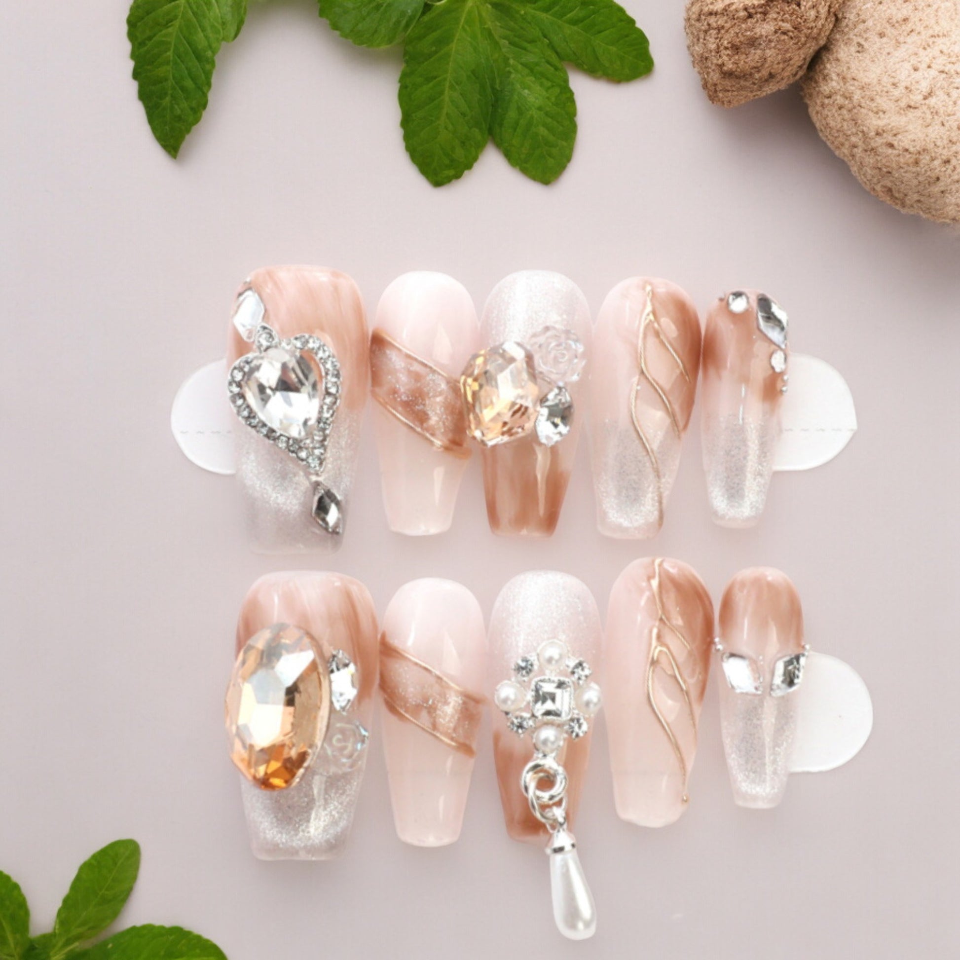 This is a stunning set for the style conscious, hand painted in beautiful nude shades, then our crystals are especially hand picked to create this beautiful set.