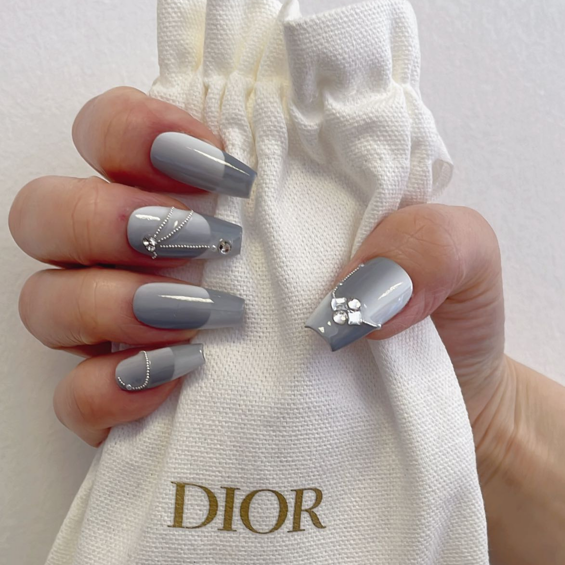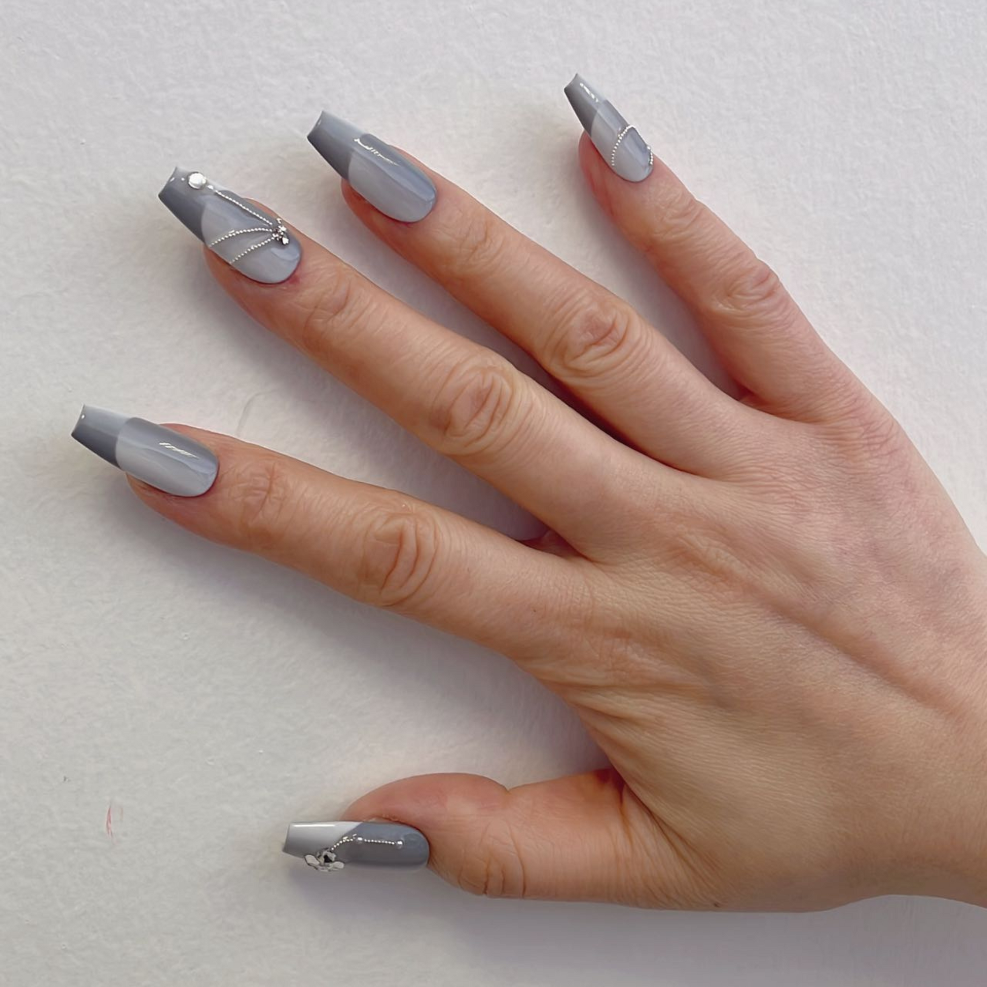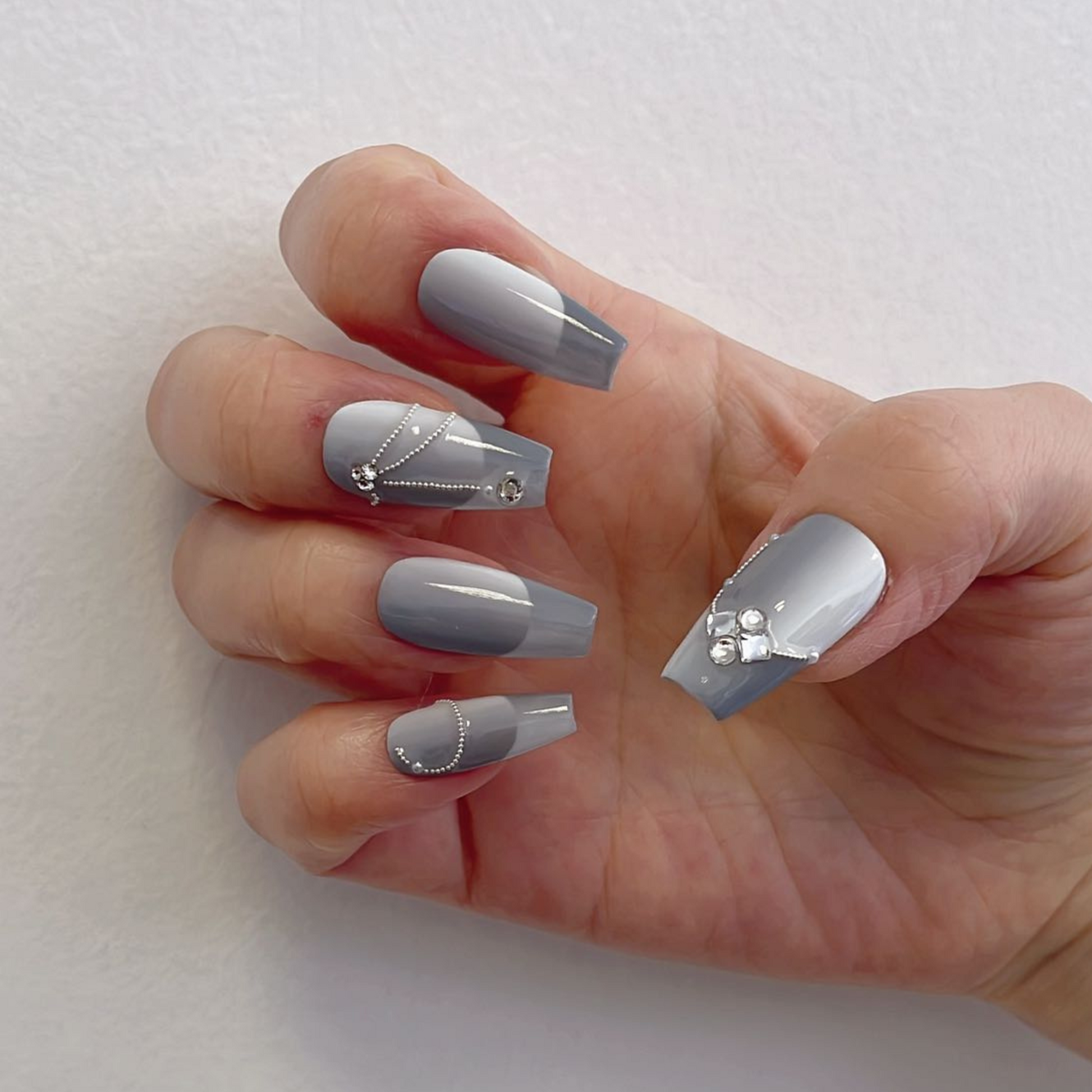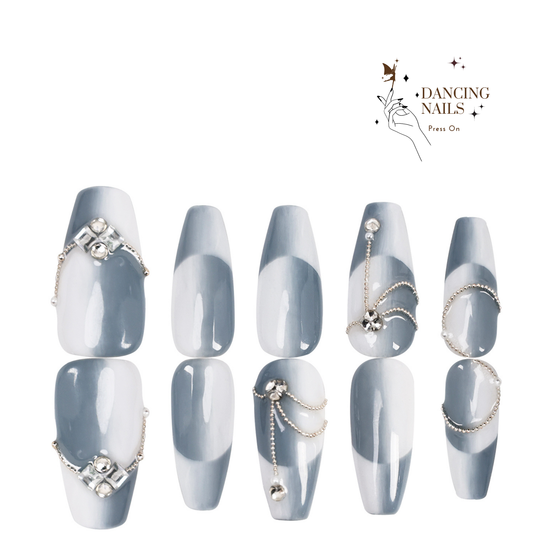 Get glamorous, hassle-free nails with our Gray Diamante Pattern Press on Acrylic Nails. No need to spend hours at the salon - simply press, and you're ready to show off your stylish bling. Perfect for any occasion, these nails are a true gem.