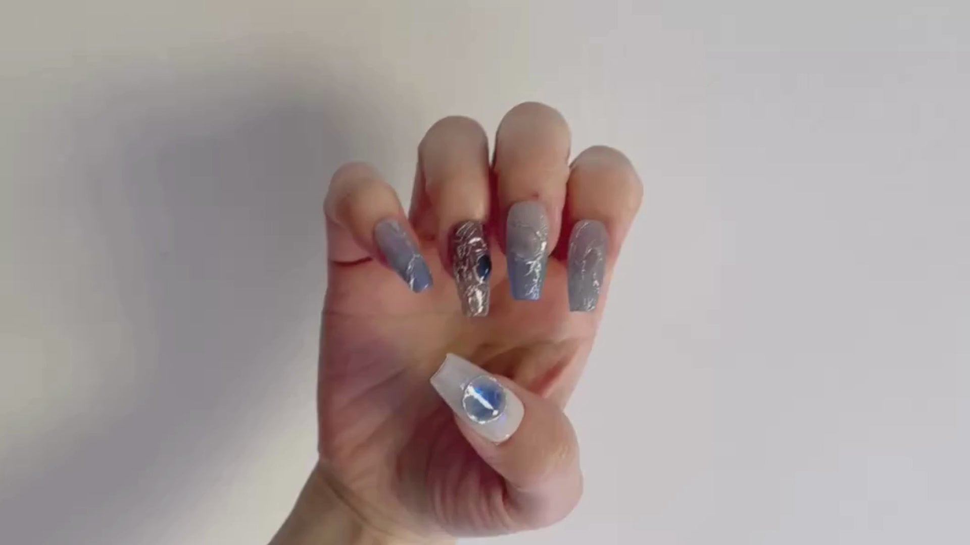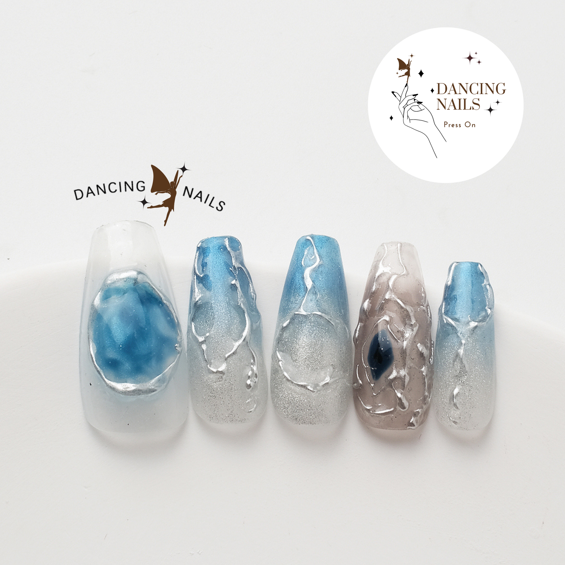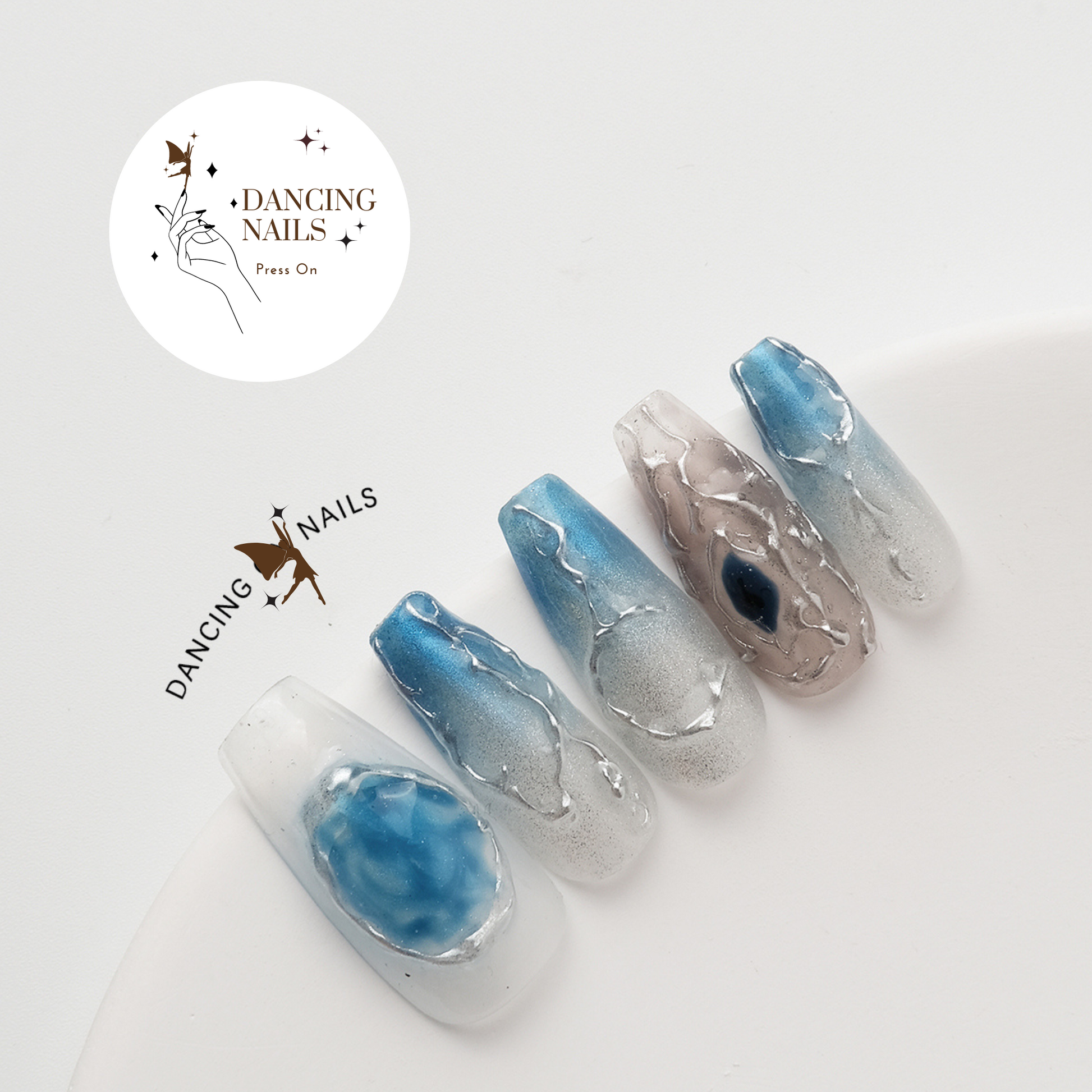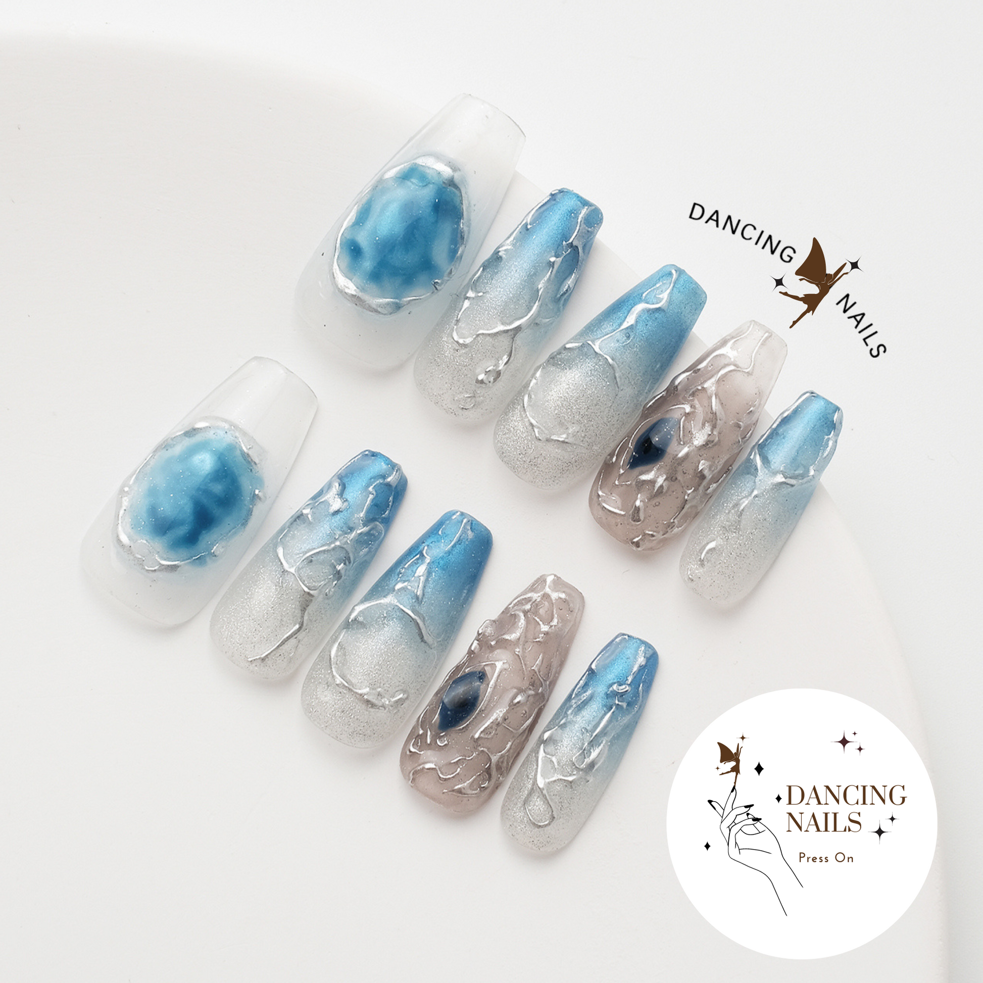 Get killer nails with our Blue Topaz acrylics - featuring a long coffin press and unique blue moon and blue tip design. Nailed it! π π