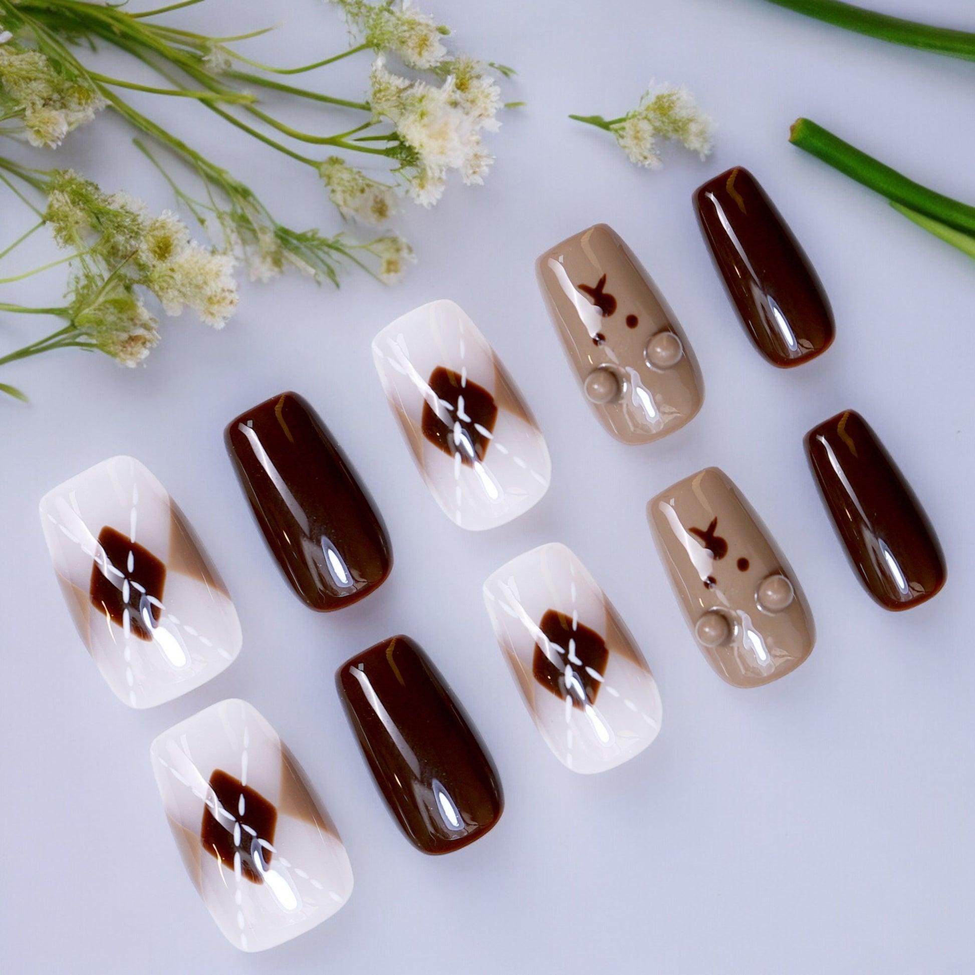 Score an adorable manicure with our Brown Cute Bear Short Coffin Press on Acrylic Nails! These playful and quirky nails are perfect for anyone who wants to add a little fun to their beauty routine. Express your unique personality with our word play on classic coffin nails.