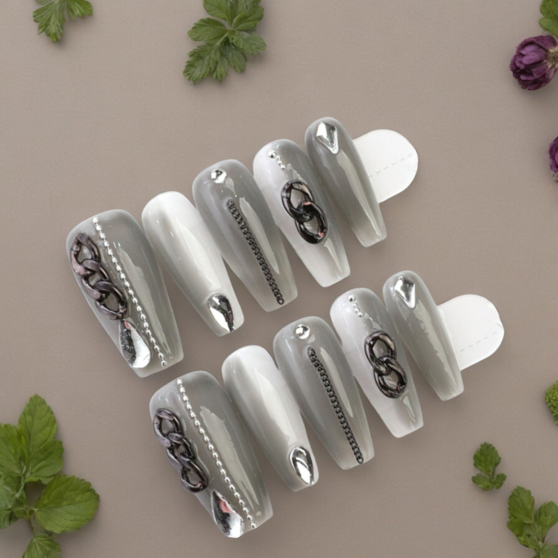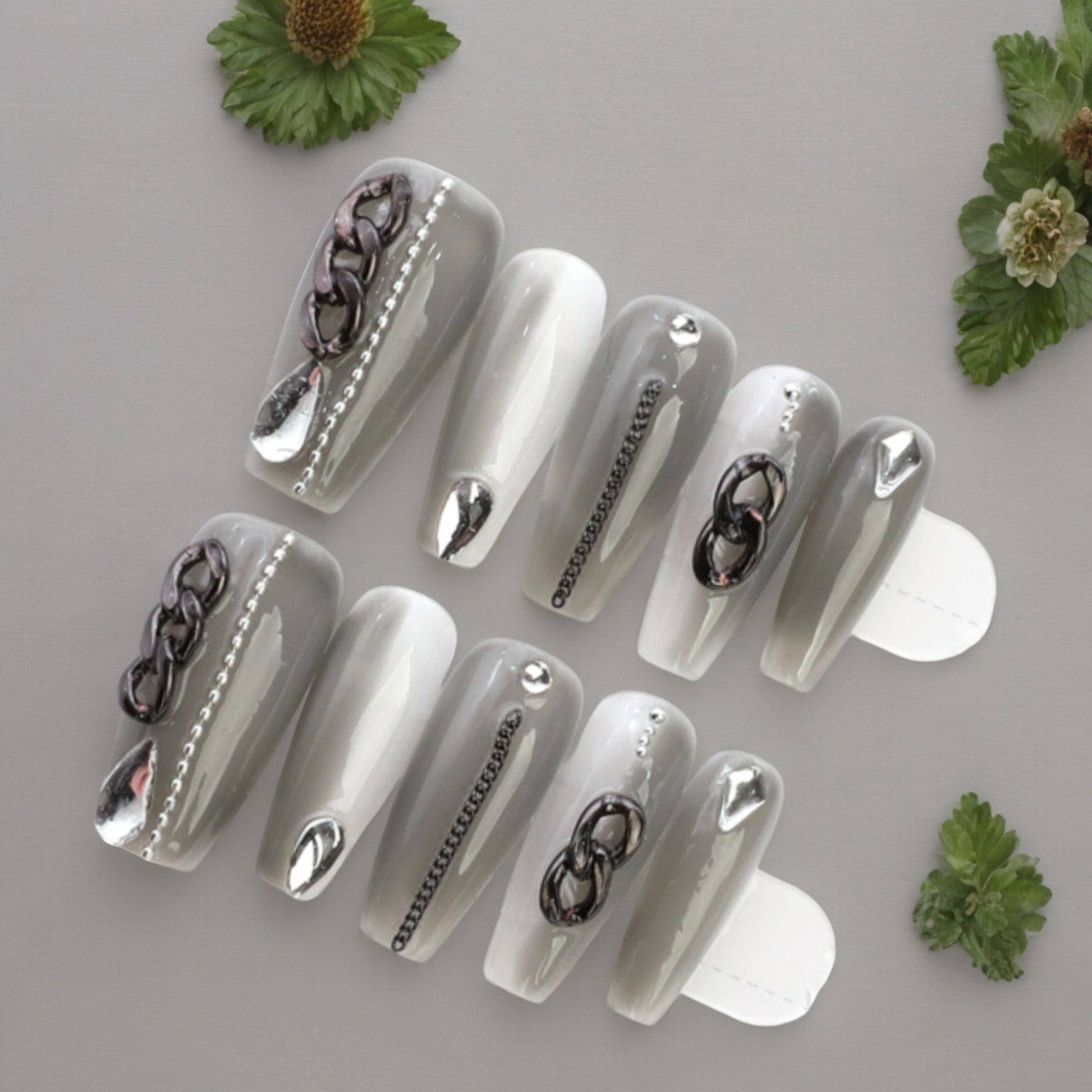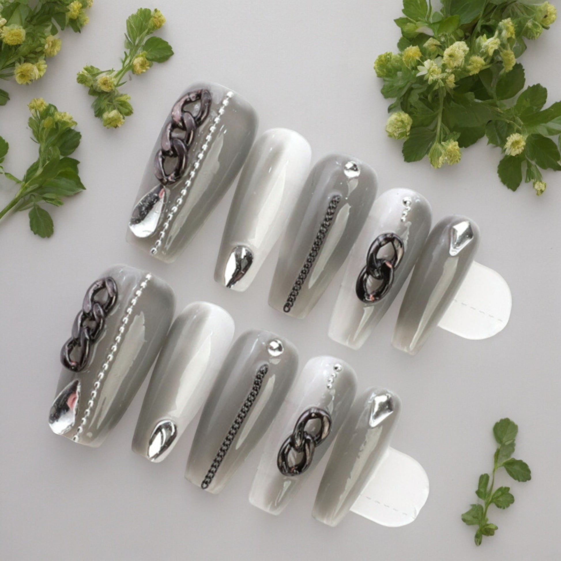 All our Press on nails set is come with One set of application kit. Each set features 10 hand-painted press on nails.