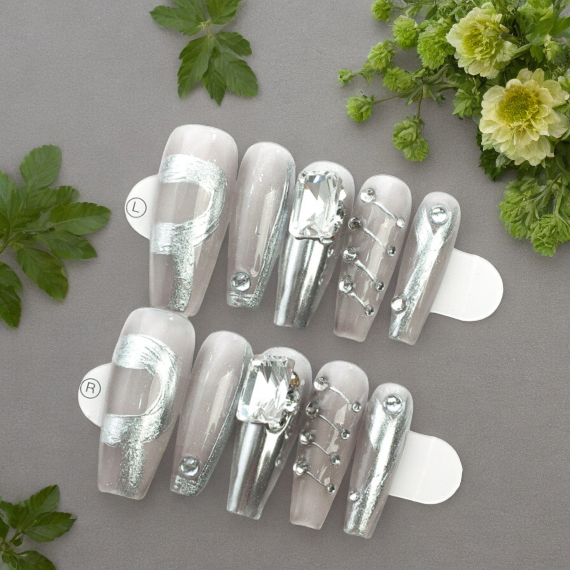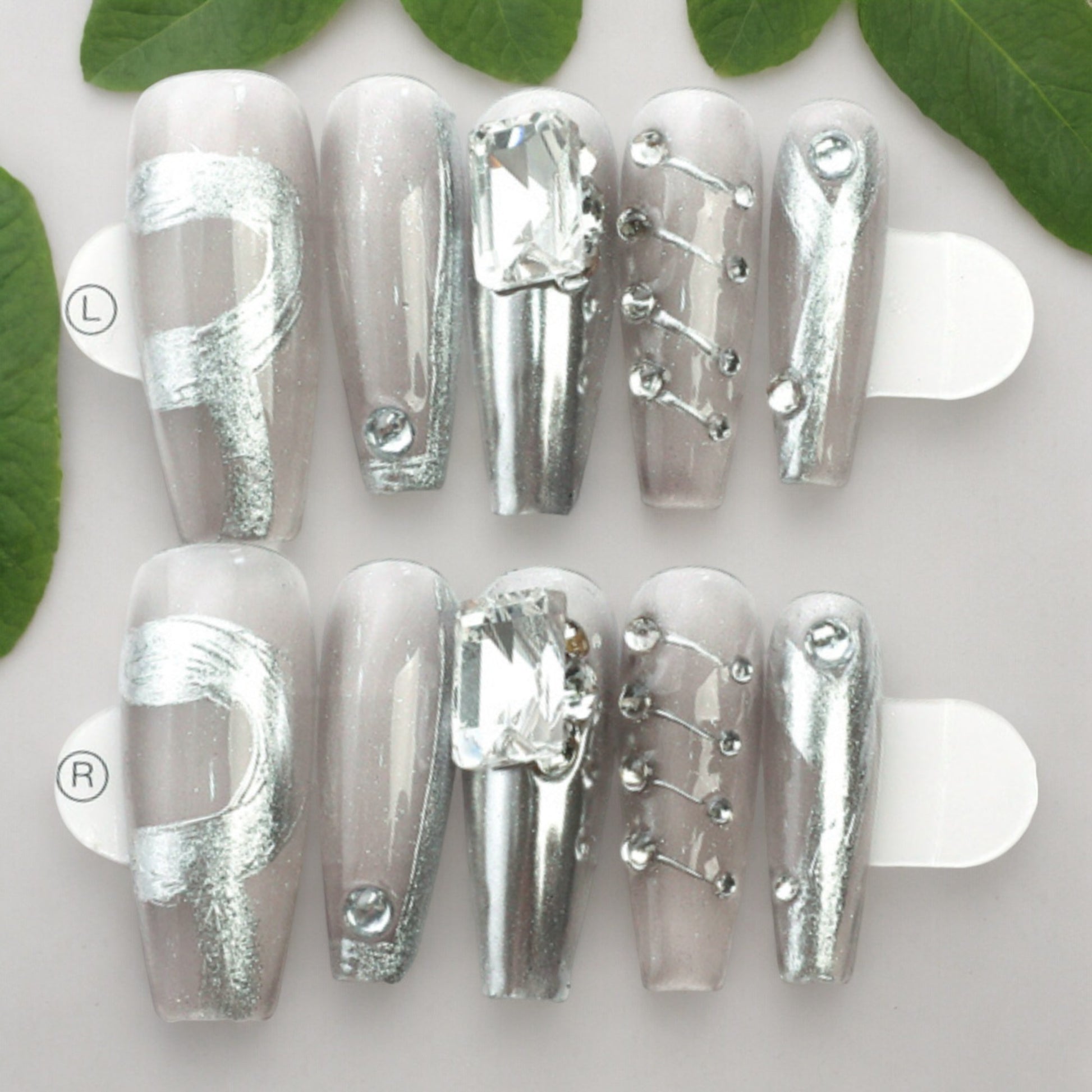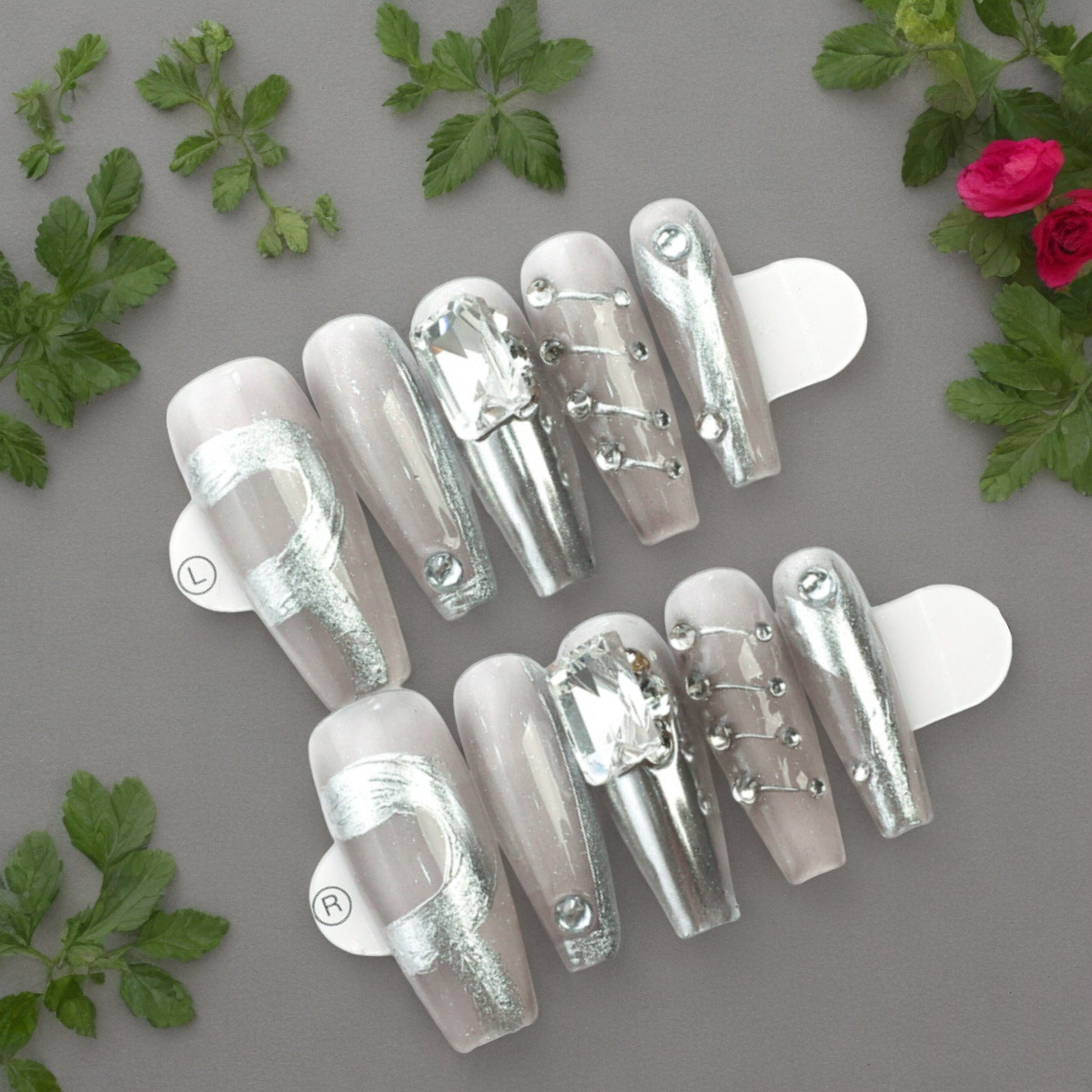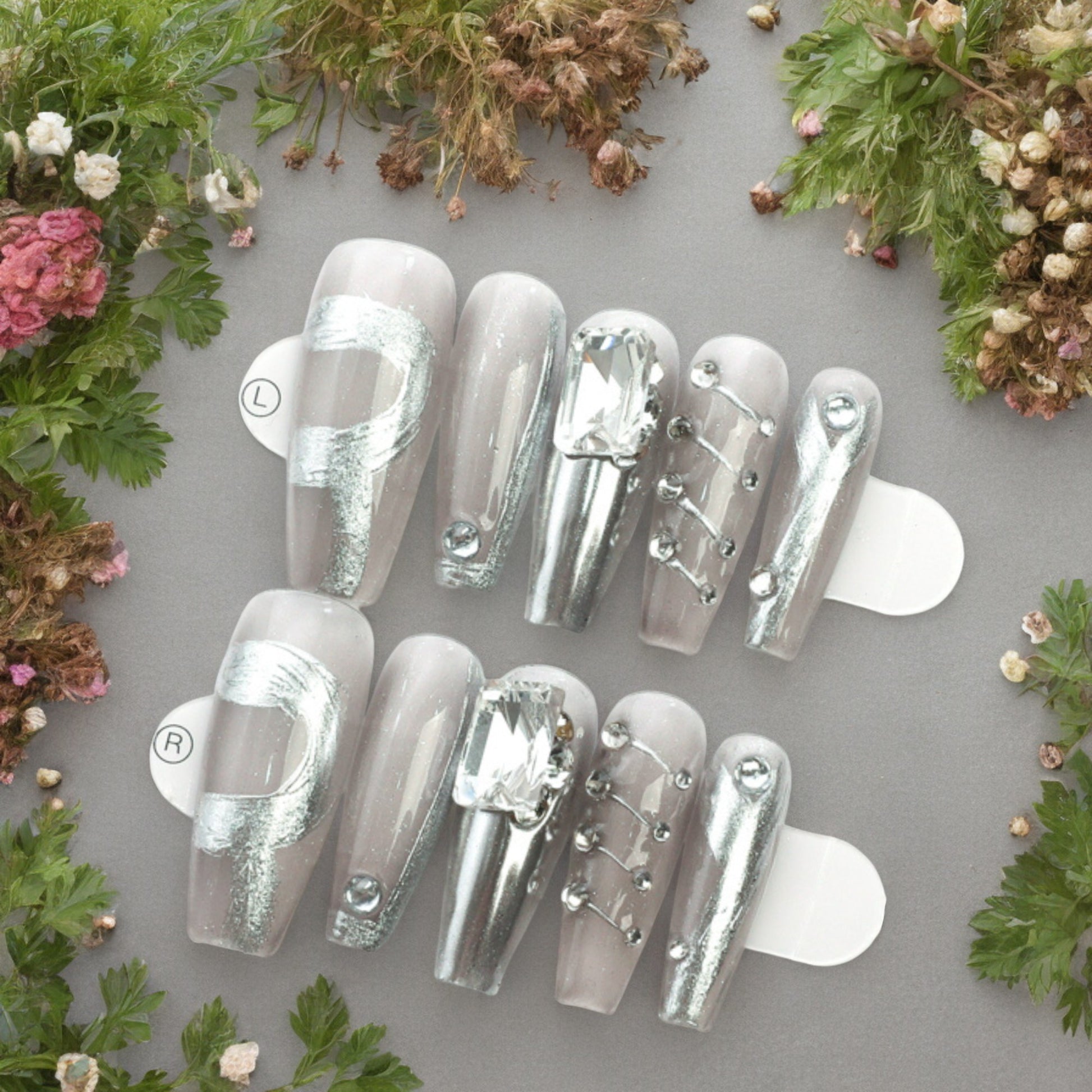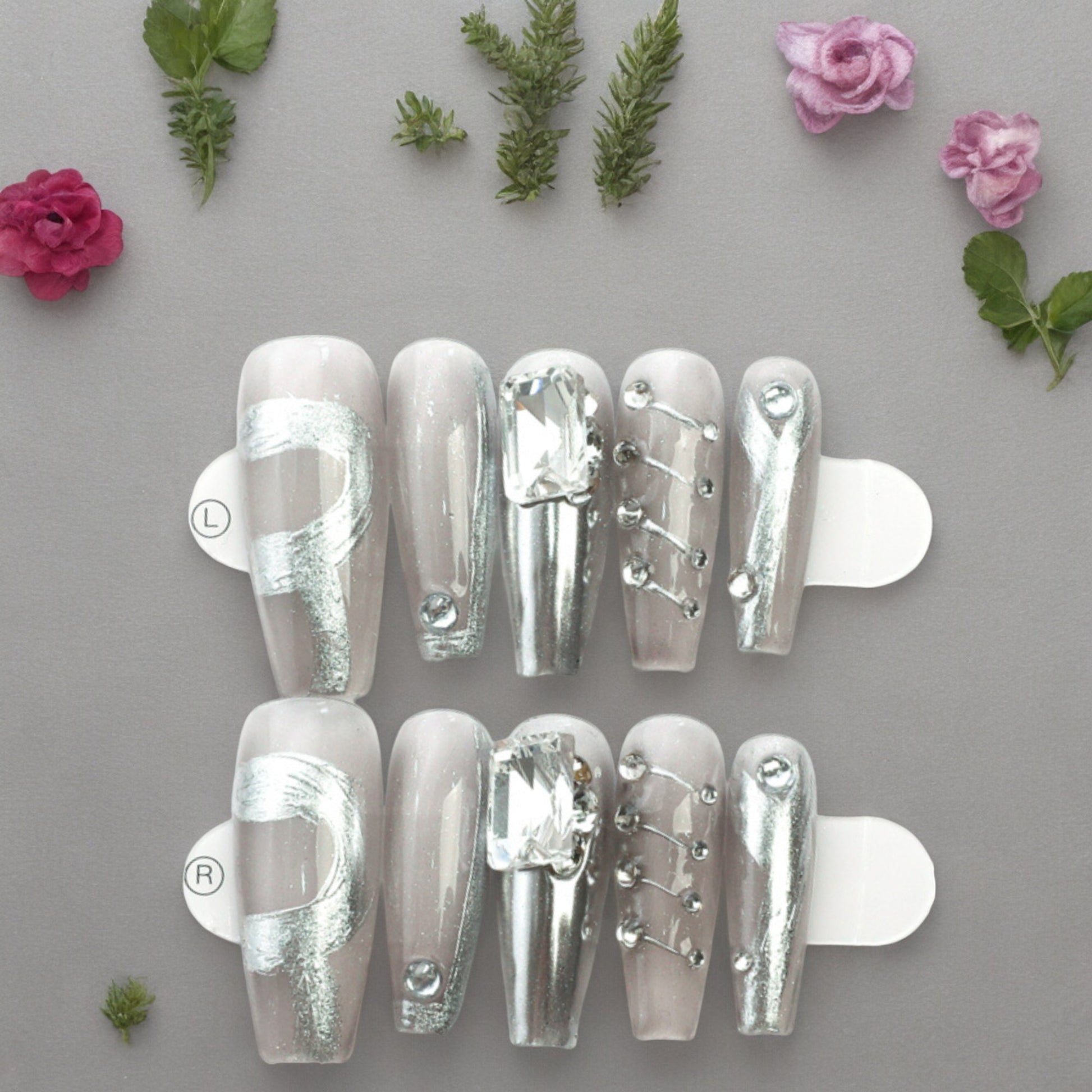 All our Press on nails set is come with One set of application kit. Each set features 10 hand-painted press on nails.