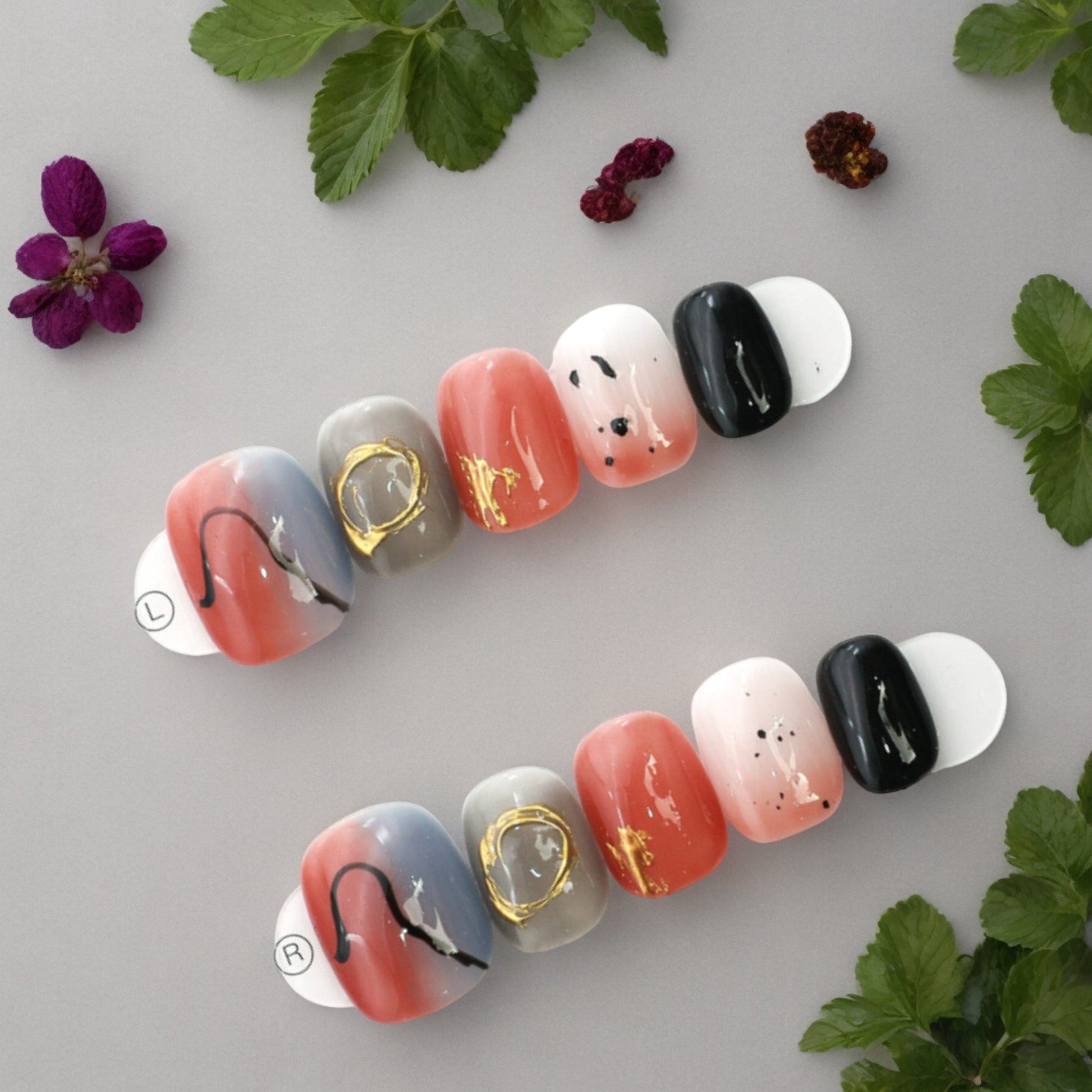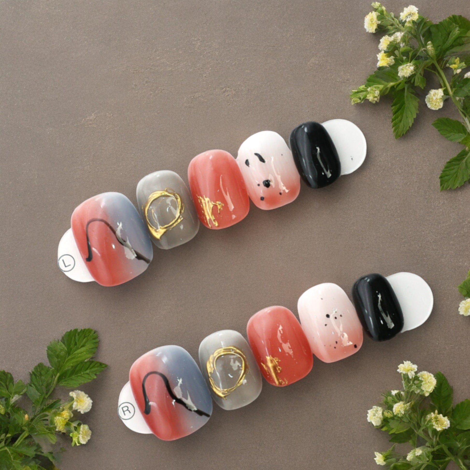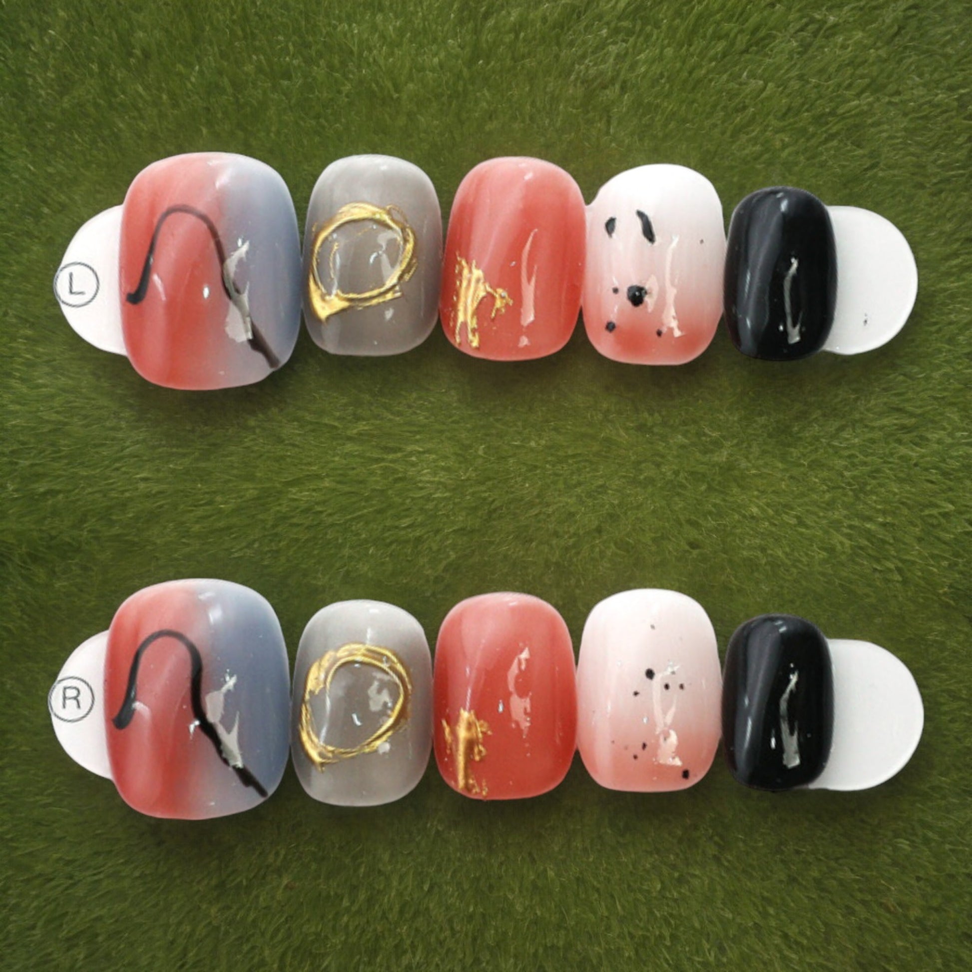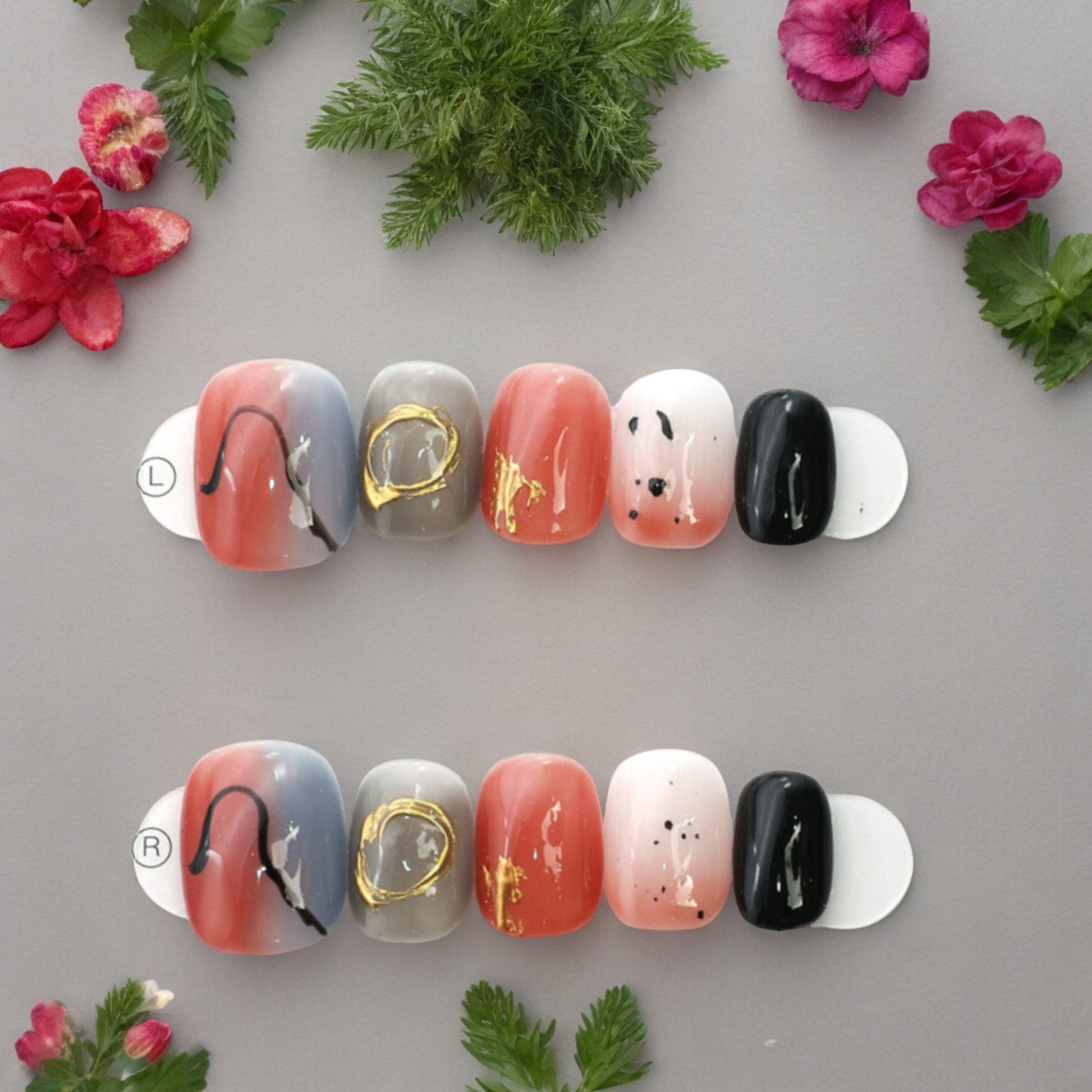 All our Press on nails set is come with One set of application kit. Each set features 10 hand-painted press on nails.