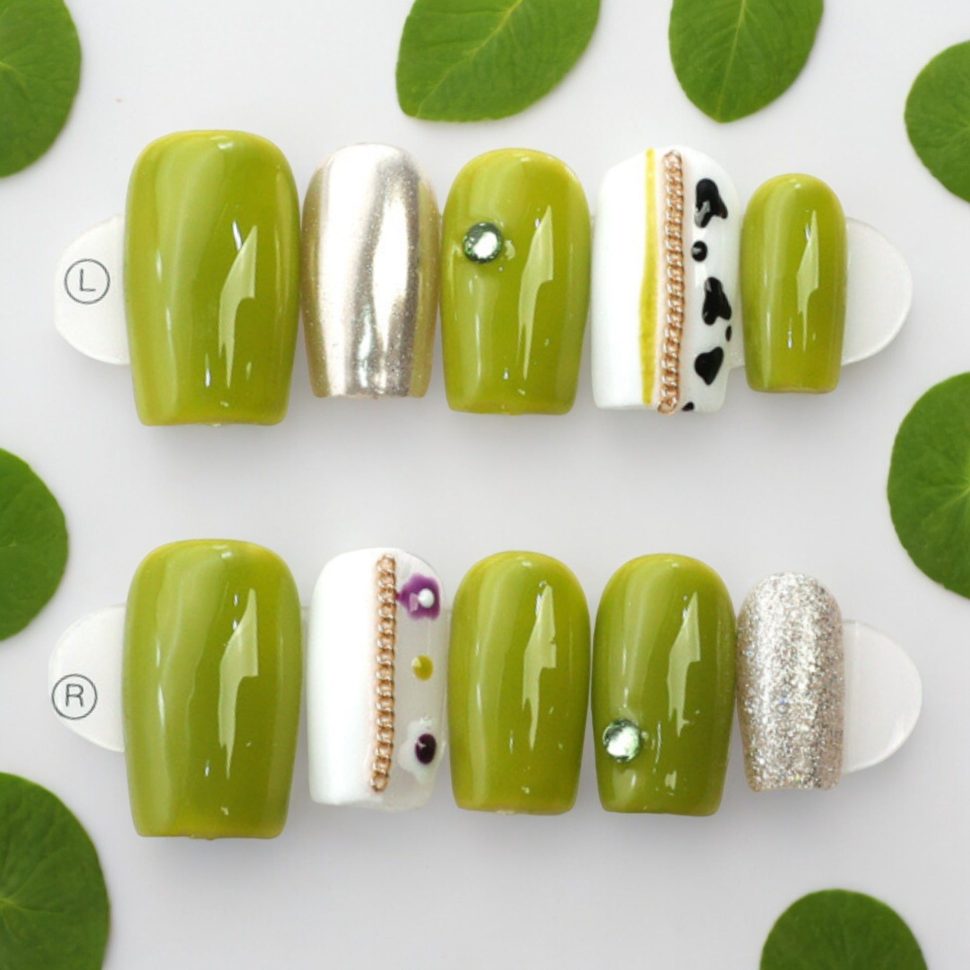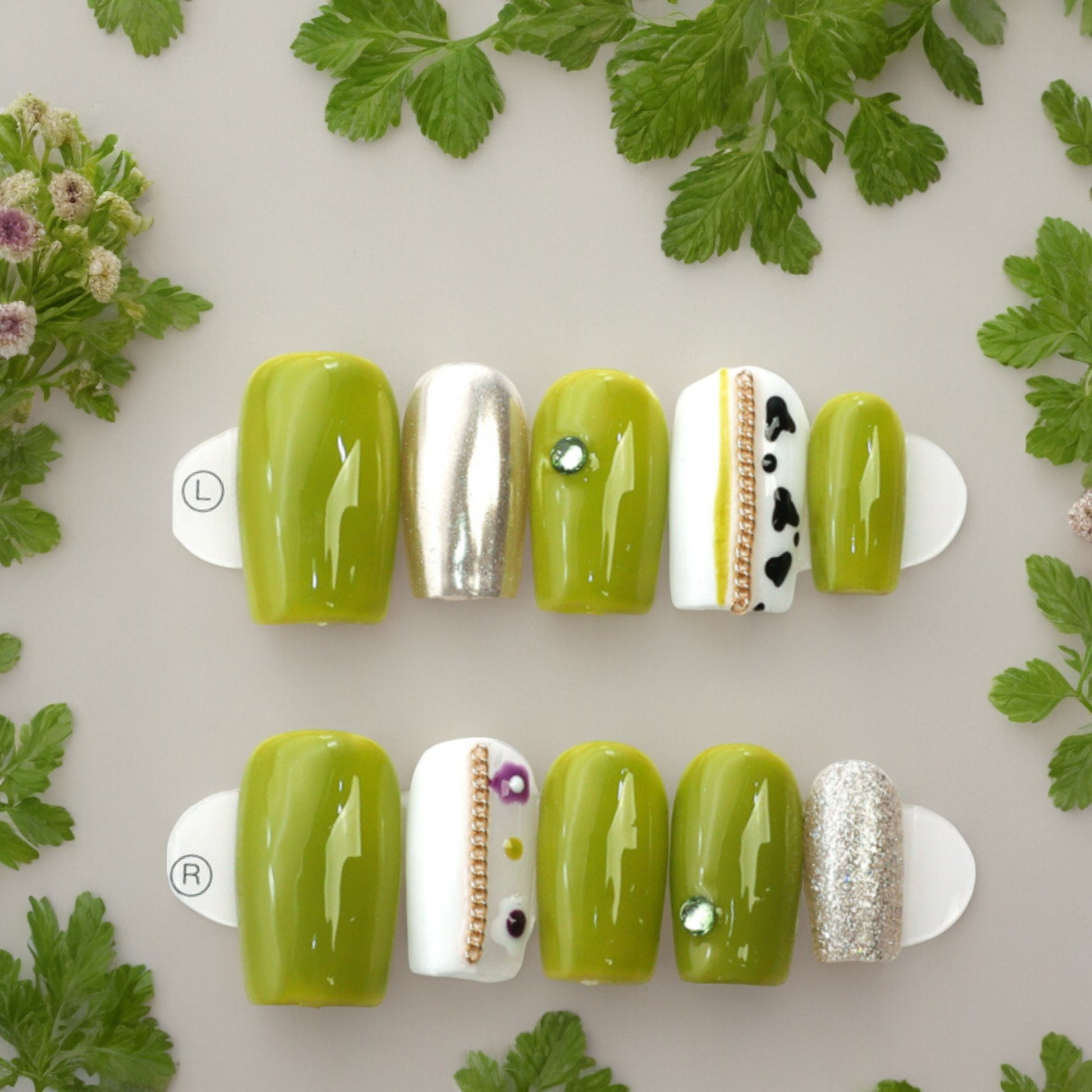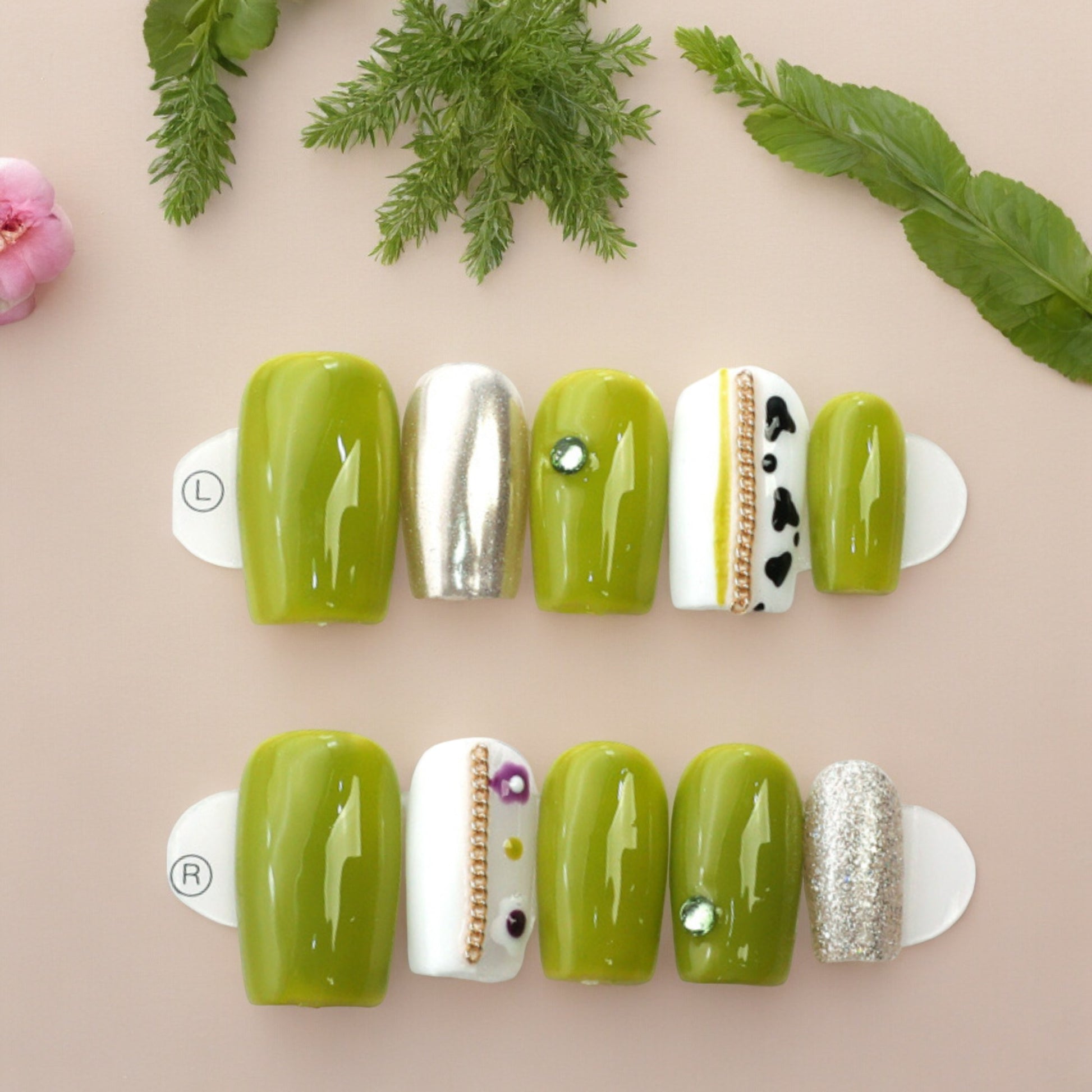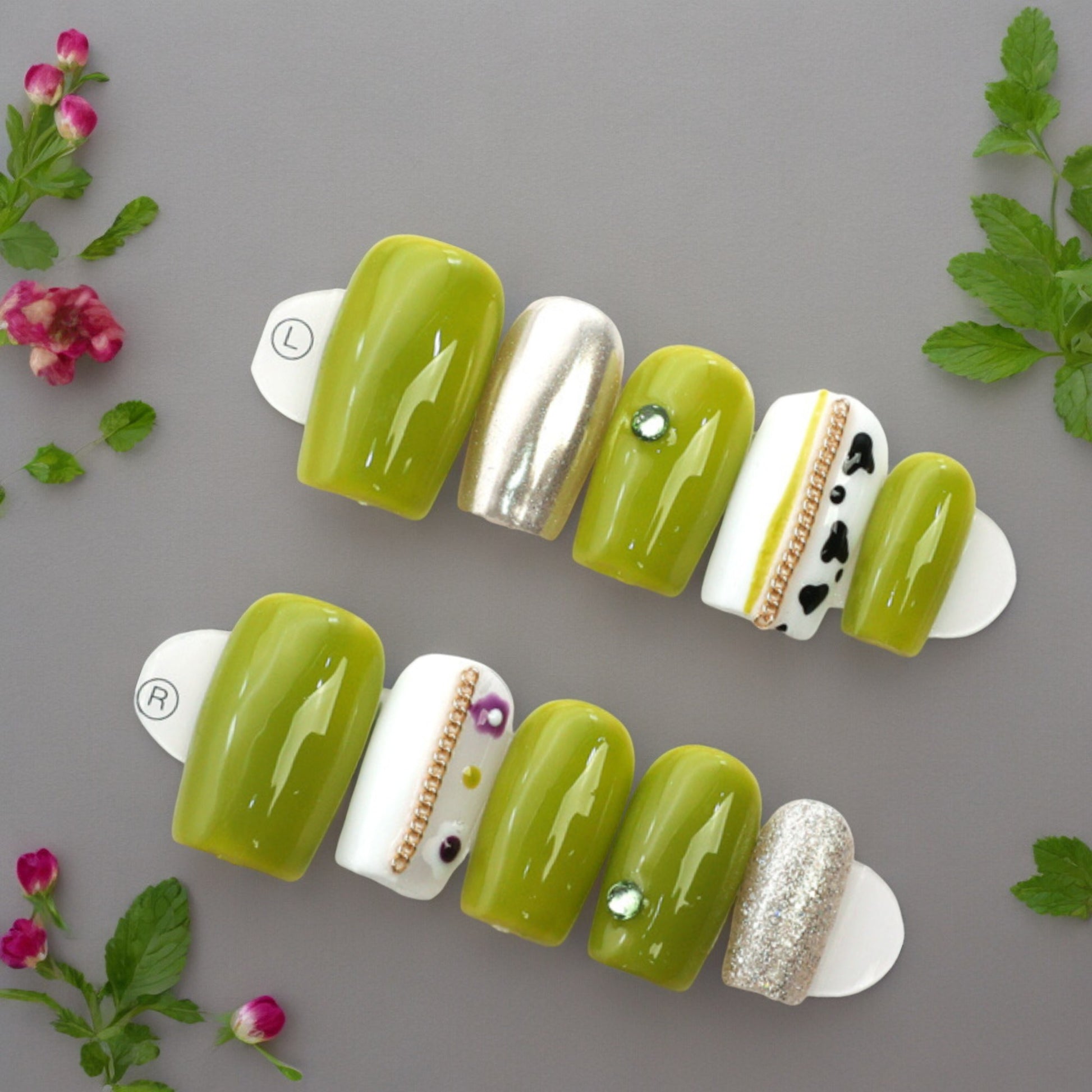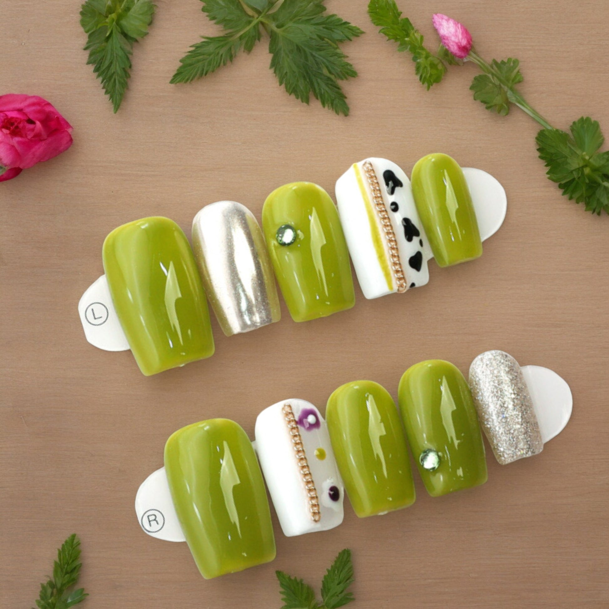 All our Press on nails set is come with One set of application kit. Each set features 10 hand-painted press on nails.