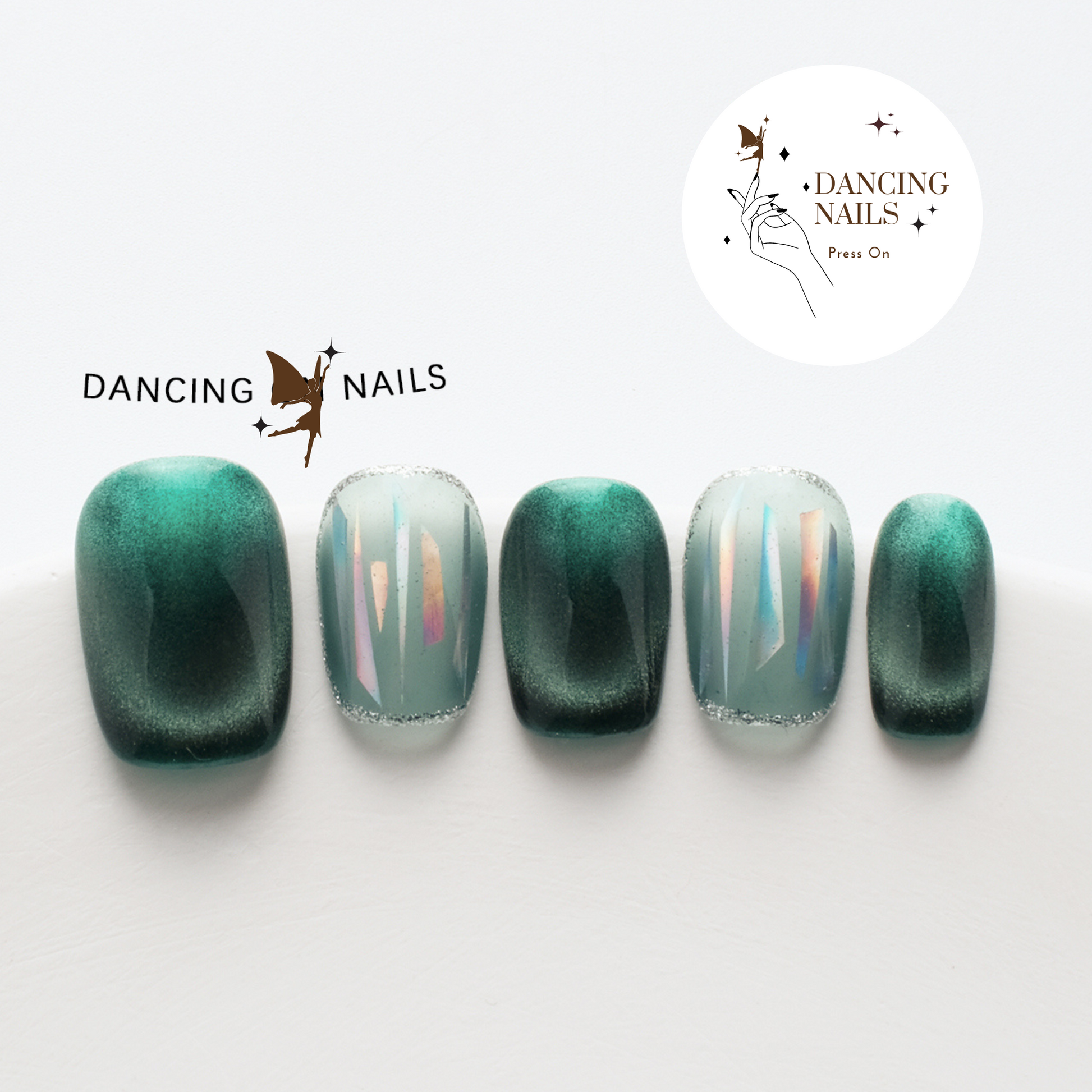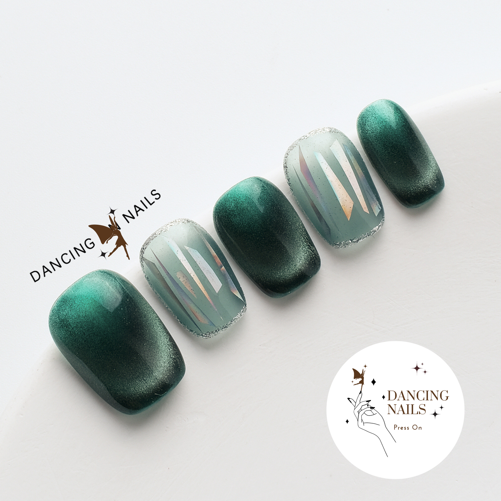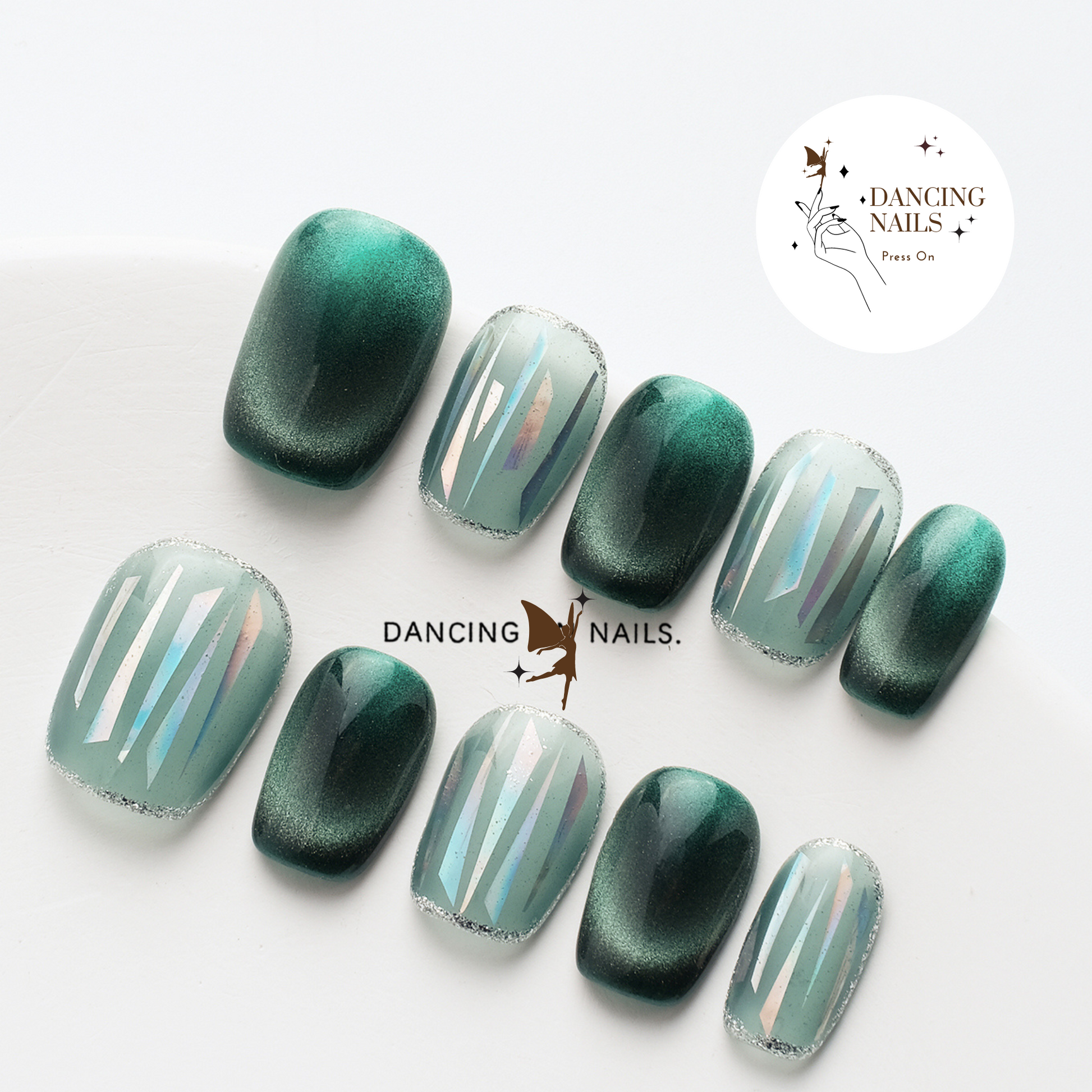 Get ready to glam it up with these Emerald Green with Silver Glitter Edge Foil Short Round Press on Acrylic Nails! The perfect combination of edgy and elegant, these nails will add a touch of sparkle to any look. No need to fuss with polish, these press-on nails are ready to go in a flash!