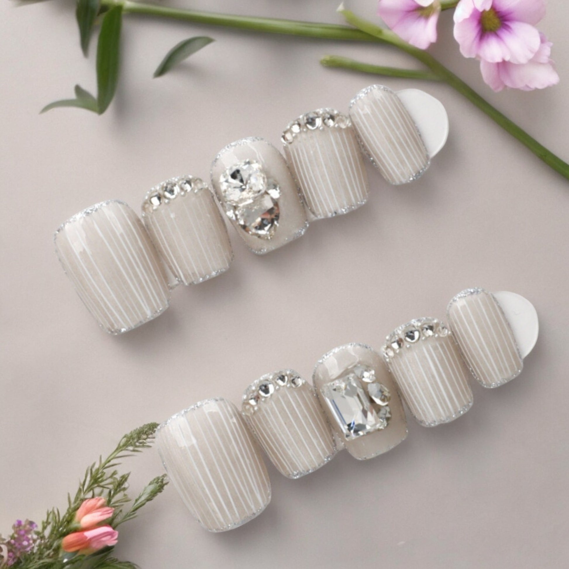 All our Press on nails set is come with One set of application kit. Each set features 10 hand-painted press on nails.