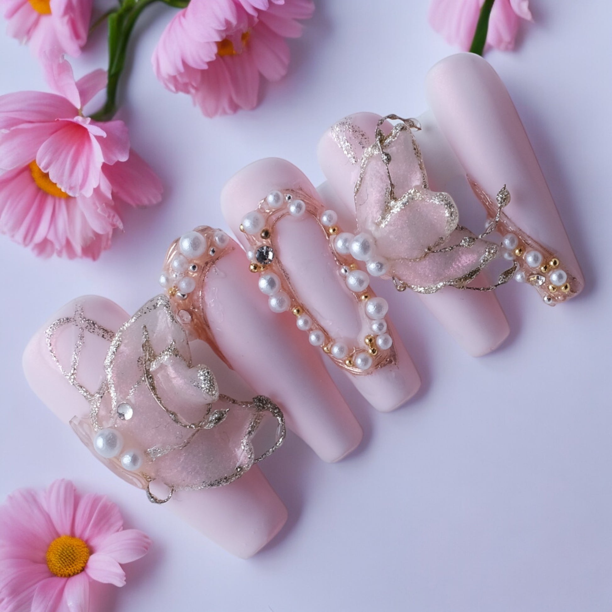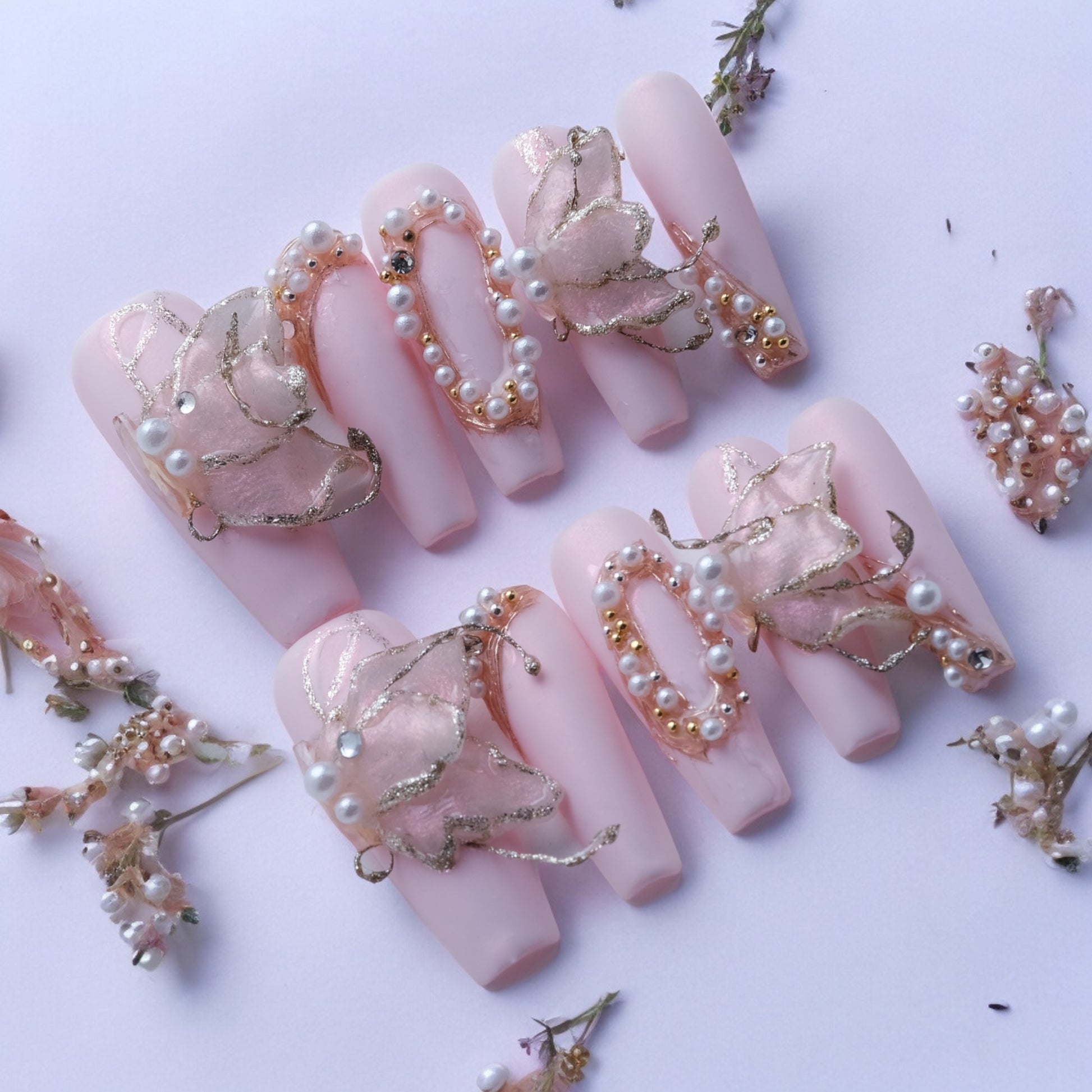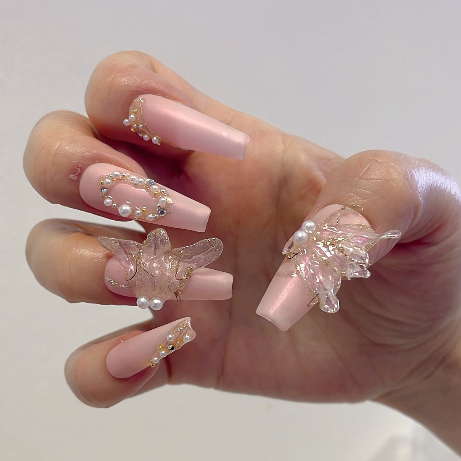 All our Press on nails set is come with One set of application kit. Each set features 10 hand-painted press on nails.